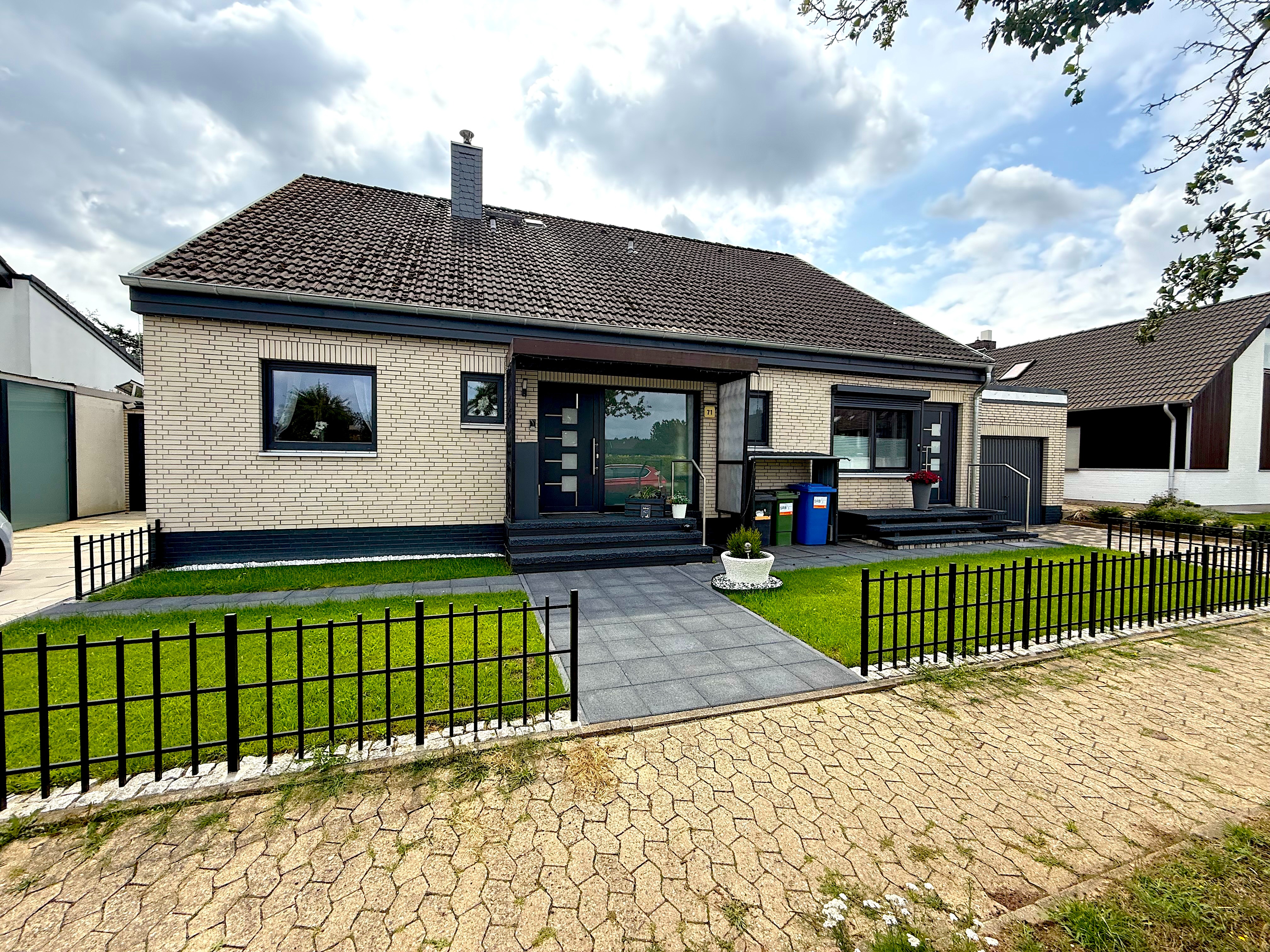 Das im Jahr 1978 erbaute Zweifamilienhaus befindet sich in einem neuwertigen Zustand und besticht durch seine solide Massivbauweise. Auf einer Grundstücksfläche von 661 m² erstreckt sich das Gebäude über zwei Etagen und bietet insgesamt 248,62 m² Wohnfläche. (Haupthaus ca 184m² Wohnfläche + Einliegerwohnung ca. 64m² Wohnfläche)