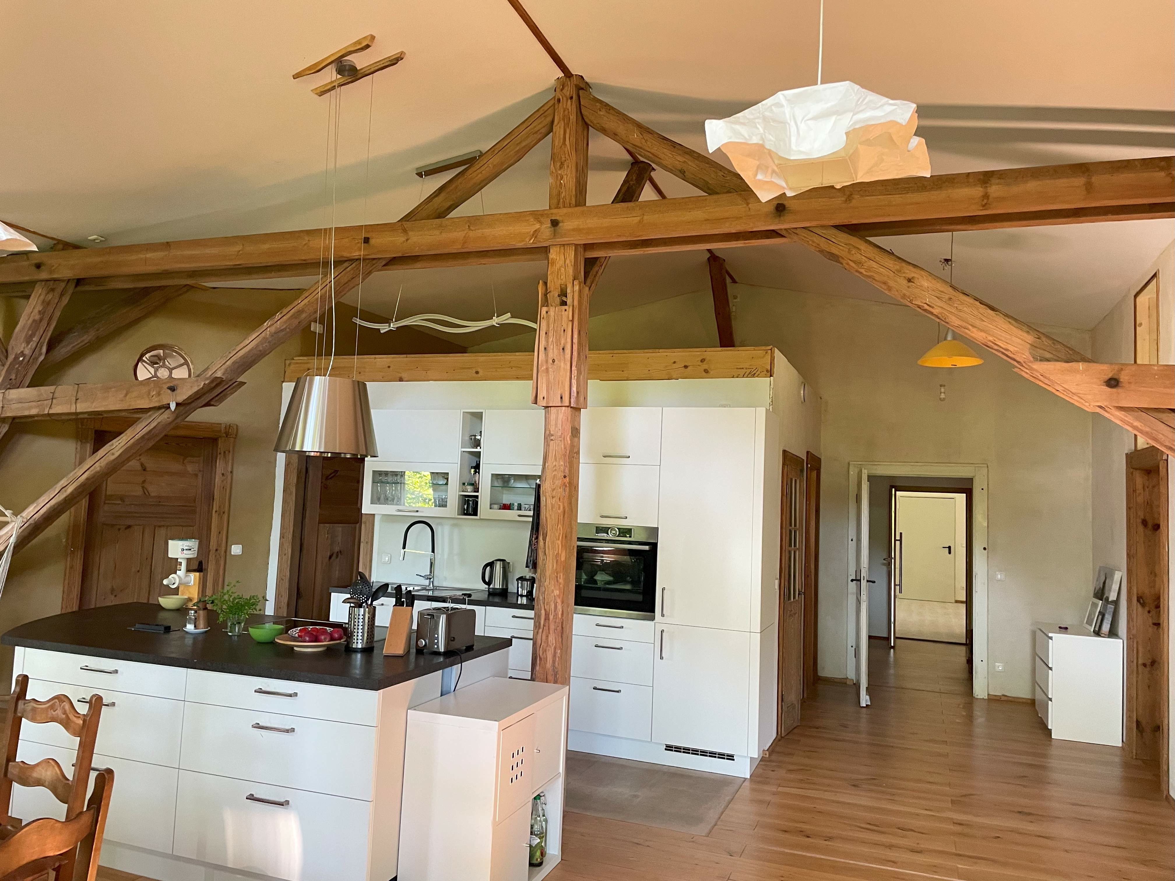 Wohnung 1 : 170 m2 auf 4 Räume ; offene Wohn und Küchenbereich mit Kaminbereich